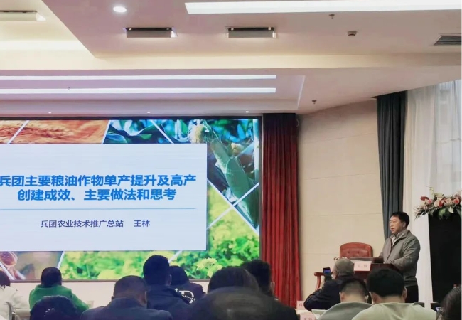 ▲兵团农业技术推广总站站长王林作主旨报告和实践技术讲座