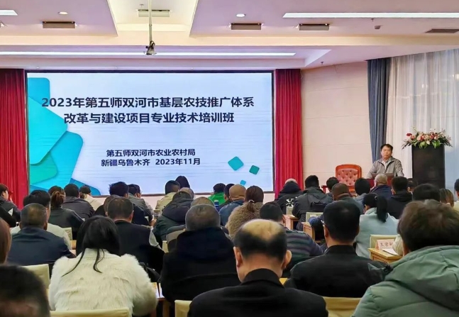 为强化基层农技推广力量,培育业务精通、服务优良的农技推广骨干人才,落实“藏粮于地、藏粮于技”保障国家粮食安全战略,在兵团农业技术推广总站总体主导和新疆格林凯尔农业科技服务有限公司倾力支持下,第五师双河市农业农村局于2023年11月26日-12月1日及12月4日-12月8日在兵团农业技术培训中心(乌鲁木齐)举办首批两期历时10天的“基层农技推广体系改革与建设项目专业技术培训班”。学员来自第五师双河市农业农村局、农科所、农业技术推广站、各团农发中心、连队“两委”、特聘技术员和阜康市、吉木萨尔县种粮示范户及一批农业要素厂家代表等,先后有100至150余人参加了此次培训。