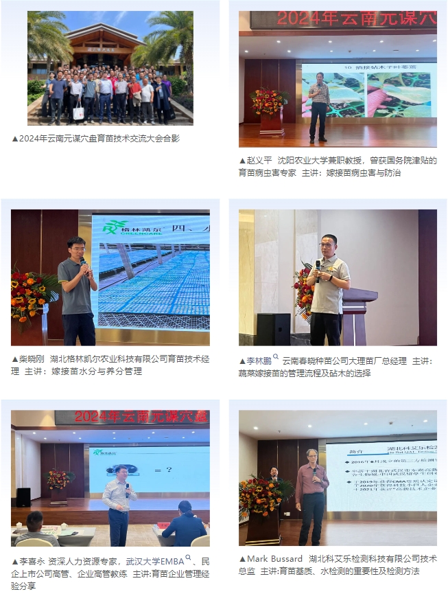湖北格林凯尔精准农业研究院于2024年3月28日在云南元谋举办了“穴盘育苗技术交流大会”。会议以“嫁接苗的生产与管理”为主题,由多位在蔬菜嫁接育苗领域拥有丰富实战经验的专家,与当地65位育苗企业代表和技术骨干,分享了在“蔬菜嫁接苗的管理流程及砧木的选择”、“嫁接苗病虫害防治”、“嫁接苗水分与养分管理”、“育苗基质与水的检测”、“育苗企业管理”等方面的知识和经验。本次会议由湖北格林凯尔农业科技有限公司和湖北科艾乐检测科技有限公司协办,并得到元谋县农业农村局的大力支持。